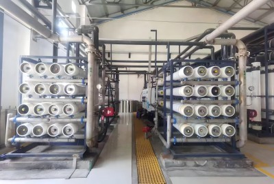 反渗透除盐原理:在半透膜的两侧分别放两种含盐量不同的水,在含盐量低的一侧施加一个压力,则含盐量低的一侧会向含盐量高的一侧渗透,随着渗透过程的进行,含盐量高的一侧液面不断升高,渗透压不断增加,当渗透压增加到与施加的压力相等时,渗透过程停止并达到平衡状态,这就是渗透现象。如果在含盐量高的一侧施加一个大于渗透压的压力,则含盐量高的一侧的水分就会透过半透膜流向含盐量低的一侧,这一过程称为反渗透。
